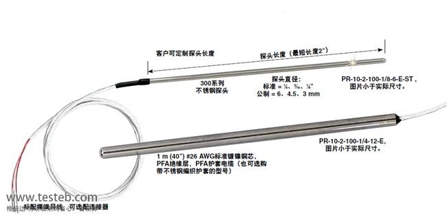 PR-10-2-100-1/4-6-E RTD探針,導致2型(3線配置),1/4“直徑。不銹鋼護套,6”長36“PFA絕緣剝完終止線索