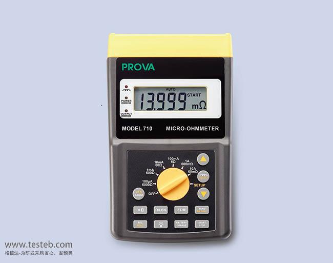 臺灣泰仕PROVA 710歐姆電阻計可測量毫歐級別的微電阻,采用四線式量測法,分辨率高達1μΩ,測量精度±0.25%,最大測試電流10A,可測試電感性的電阻。