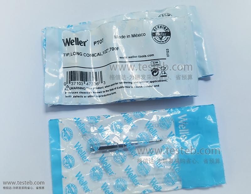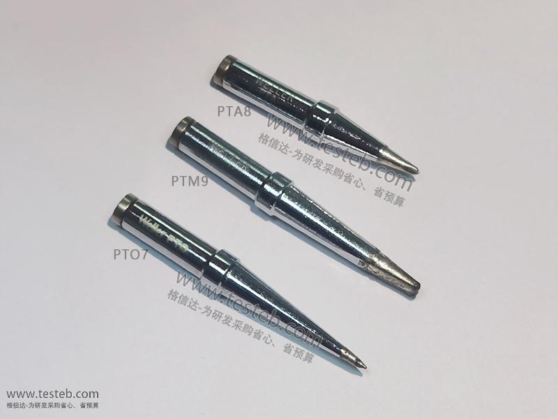 Weller磁控烙鐵頭常見于早期WESD51、WTCPT磁控焊臺以及WTCP51,連接TC201T焊筆手柄或者WTCP51及單支焊筆TCPS、TCP12、TCP24等。 Welle PT磁控烙鐵頭居里控制溫度可選擇包括260°C、310°C、370° C、425℃與480°C。如Weller PTO7烙鐵頭居里溫度為370℃,尖細圓形焊頭直徑0.8mm,用于小焊點物料精密焊接。