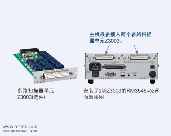 日置HIOKI RM3545-02微歐計電阻測量范圍0.00μΩ~1200.0MΩ,最小分辨率0.01μΩ,6位半顯示,基本精度0.006%,測試電流1μA~1A,接Z3003多路掃描器單元可實現10~40通道測量,應用于手機屏幕、網絡電阻、轉向開關、三相馬達線圈等需要高精度低阻抗多點測量需求。