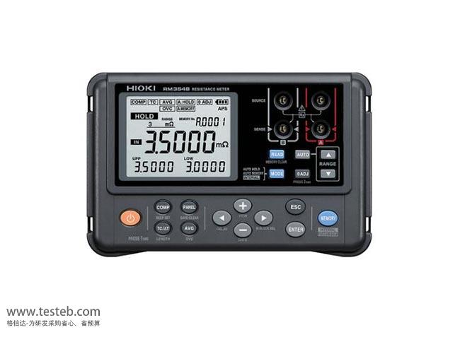 日置HIOKI RM3548微電阻計采用直流法測量0.0μΩ~3.5MΩ電阻,最小分辨率0.1微歐,精度0.02%,僅需將探頭接觸被測物,即可簡單記錄多達1000個數據,使用溫度探頭可采集溫升實驗數據,便攜式設計。