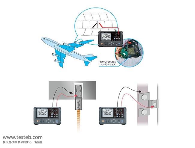 汽車的接地線或飛機機體焊接/鉚接部分的導通確認