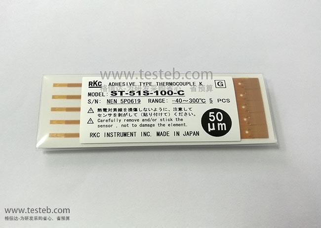 RKC ST-51S-100-C熱電偶測頭尖部窄小型寬度僅2.3mm、厚度0.13mm、粘貼部長7mm,測溫范圍-40~300℃、精度±1.2℃,0.08秒瞬時響應(yīng),用于快速測量微型物體溫度變化,通過W-ST50A專用連接線與各類型溫度測量儀連接。