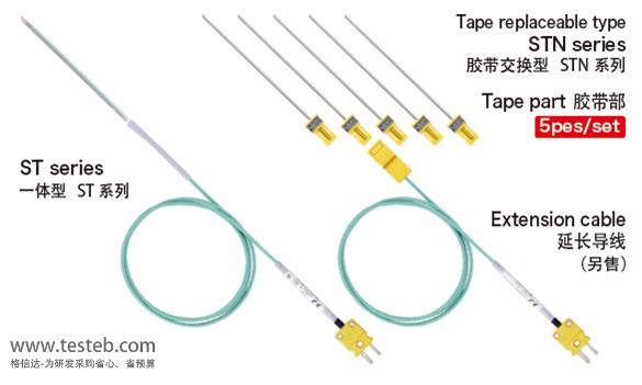 Anritsu安立STN-11K-010熱電偶感溫膠帶測溫范圍-50~210℃,精度±2.5℃,鐵氟龍包膜材質,可交換型尖形測頭適合用膠帶貼在被測物或夾入被測物體測量表面溫度,響應時間2s。