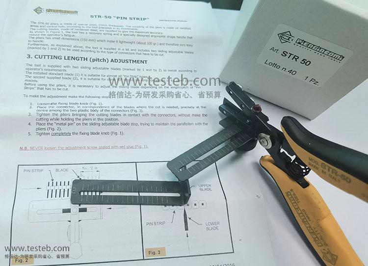 意大利Piergiacomi STR-50剪鉗工具可用于剪切直線形和成角度的PIN條,可調擋板允許設置不同的條帶間距3mm~50mm,另有STR-50K套件包含螺絲及備用刀片等磨損部件,鉗子長度150mm,重量100g,切削力量6kg。