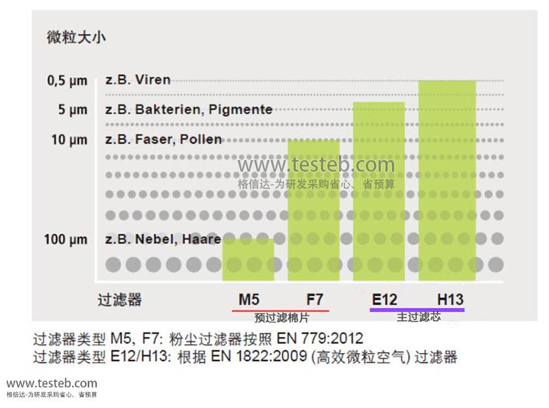 T0058762857預(yù)過濾棉片:FINE DUST FILTER F7 (10) 255X255mm,F(xiàn)7粉塵預(yù)過濾,10-100μm塵埃顆粒物阻擋吸附 T0058762858主過濾芯:H13顆粒過濾器和氣體過濾器(10%活性炭),微粒過濾器區(qū)分等級 MPPS>99.5 % 過濾效果>99.95% |