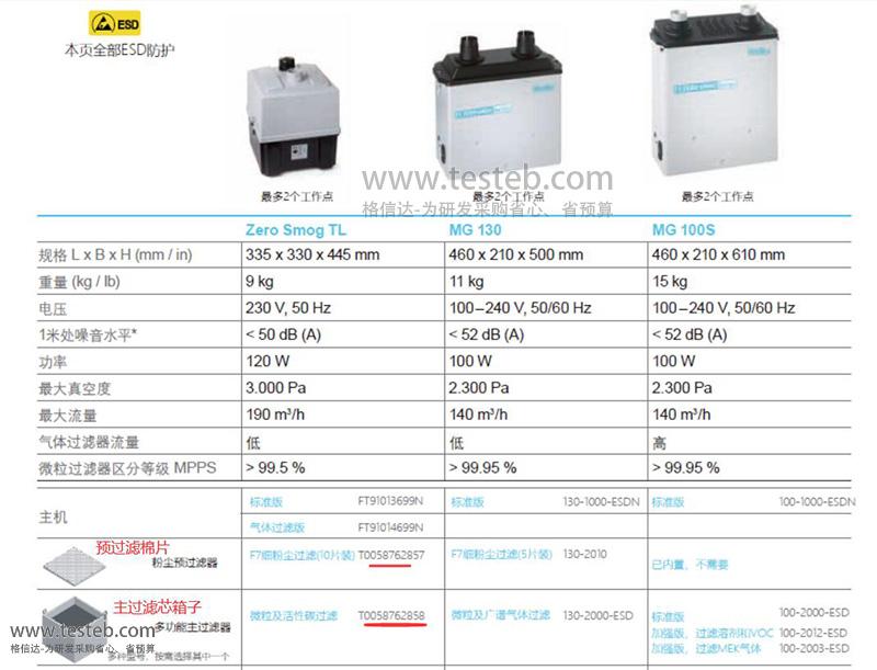 FT91013699N:ZSTL吸煙儀煙霧凈化器標(biāo)準(zhǔn)版主機,ZERO SMOG TL FUME EXTR. UNIT 230V F/G FT91014699N:TL煙霧凈化器,氣體過濾版主機,ZERO SMOG TL W. GAS FILTER 230V F/G T0058762857:TL煙霧凈化器,F(xiàn)7粉塵預(yù)過濾濾芯(10片裝),F(xiàn)INE DUST FILTER F7 (10) 255X255 T0058762858:TL煙霧凈化器 多功能主過濾濾芯(微粒及活性碳) FILTER SET H13 W. 10 FINEPART FILTERS F7 FT91015699N:TL煙霧凈化器套裝1 含一套管子和喇叭口,ZERO SMOG TL KIT1 WF FUNNEL 230V F/G FT91016699N:TL煙霧凈化器套裝2 含2套管子和斜口,ZE. SMOG TL KIT2 2x0F15 2xFT_NL 230V F/G FT91017699N:ZERO SMOG TL KIT 2雙工位煙霧凈化器 喇叭口,ZERO SMOG TL KIT2 2x0F15 2xALFA 230V F/G |