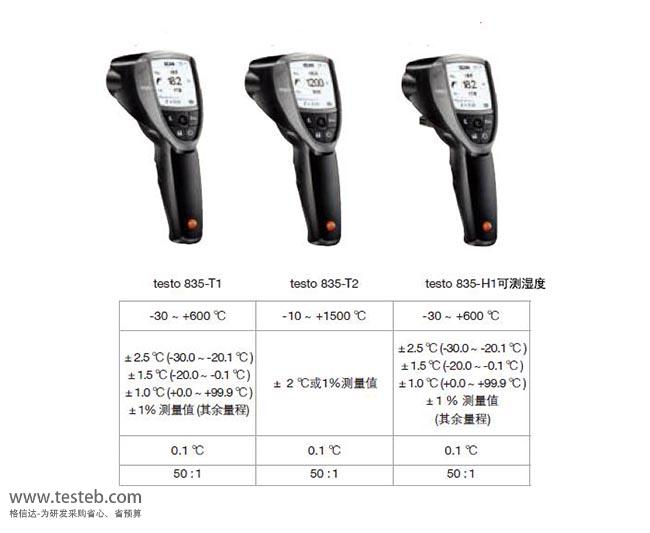 | 型號 | testo 835-T1 | testo 835-T2高溫型 | testo 835-H1帶濕度測量 |