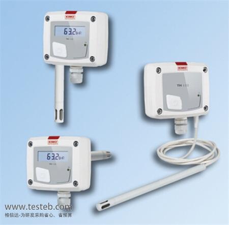 KIMO TH110溫濕度變送器濕度量程0~100%RH,溫度范圍0~50℃,壁掛式和分體型變送器可通過背出線方式連接輸出信號4-20mA或0-10V,可選數字顯示屏。