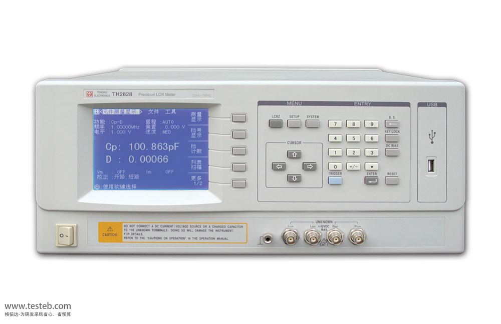 同惠精密LCR數字電橋TH2828/TH2828A/TH2828S測試頻率20Hz-1MHz,1mHz分辨率,高達100MΩ的阻抗測試范圍可以滿足元件與材料的一切測量要求,特別有利于測量低D電容器和高Q電感器的測量。