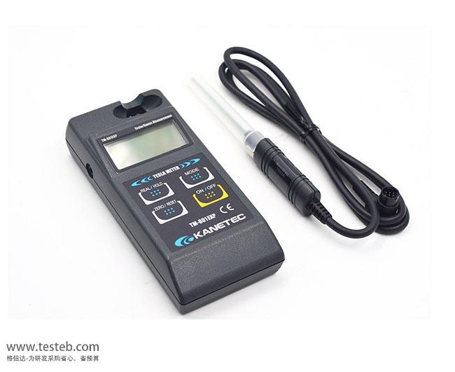 高斯計是用于測量單位面積平均磁通密度或磁感應強度的精密儀器,單位毫特斯拉(mT)或高斯(Gs)。在CGS單位制中,磁感應強度的單位是Gs高斯,因此叫高斯計,適用測量較小的磁通密度領域;而在SI單位制中是T特斯拉,因此叫特斯拉計,用于測量較大的磁通密度。日本KANETEC強力TM-801EXP高斯計可測量0~3000.0mT,mT單位換成高斯G,通過動開關切換。KANETEC TM-801EXP具有液晶顯示屏,分辨率可達0.1 mT,同時顯示極性(N·S),用于大小家電產品磁場強度測量及各類殘留磁氣、磁束密度測定。