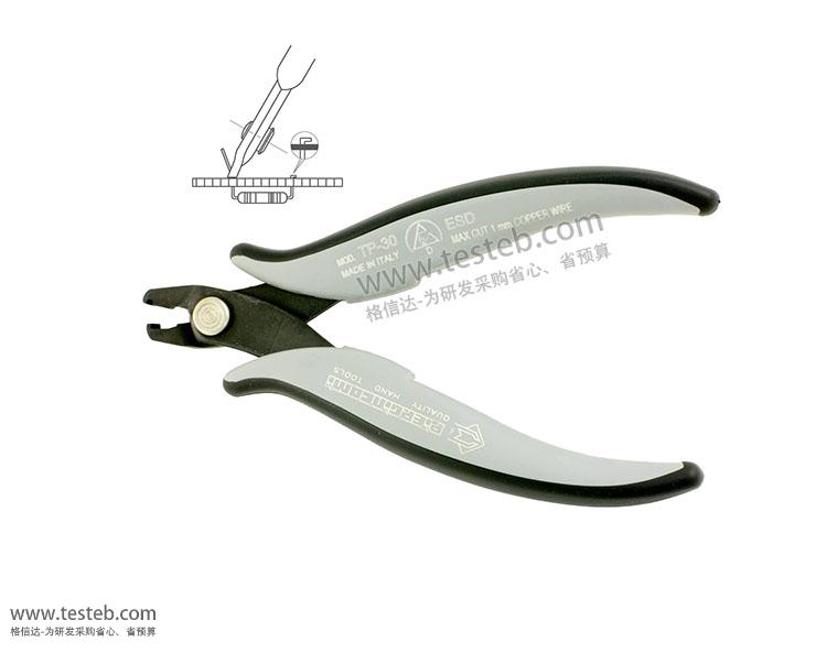 TP-30彎切鉗Cut bend pliers:剪切引腳并保留一小段引腳向外180度彎曲壓平緊貼線路板,A special tool that cuts and bends the component wire against the PCB in one operation.