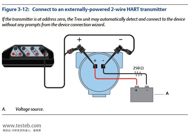 HART + 電源端子:用于HART 與Trex單元通訊,并可為一個(gè)HART 設(shè)備供電,兩個(gè)香蕉插頭,包括HART 電源、電阻器(167 Ohm)、電流控制及電流表,電流3~22.5 mA