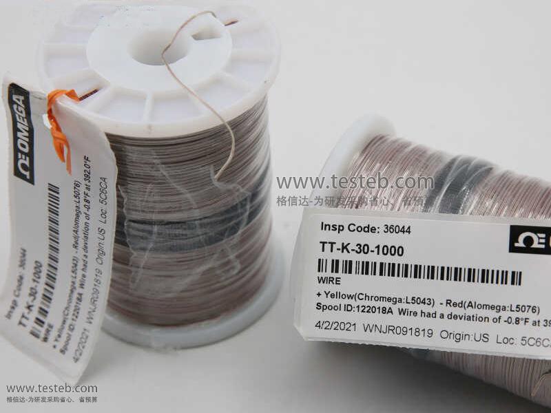 美國(guó)原裝OMEGA TT-K-30 K型熱電偶測(cè)溫線量程范圍-200℃到260℃,精度0.75%或者2.2℃(另有TT-K-30-SLE特別限制誤差精度為0.4%或者1.1℃),線徑0.254mm,是日置記錄儀/安捷倫34970A數(shù)據(jù)采集器/FLUKE 2638A等溫度采集測(cè)量?jī)x器常用感溫線,用于進(jìn)行精密溫度測(cè)試。