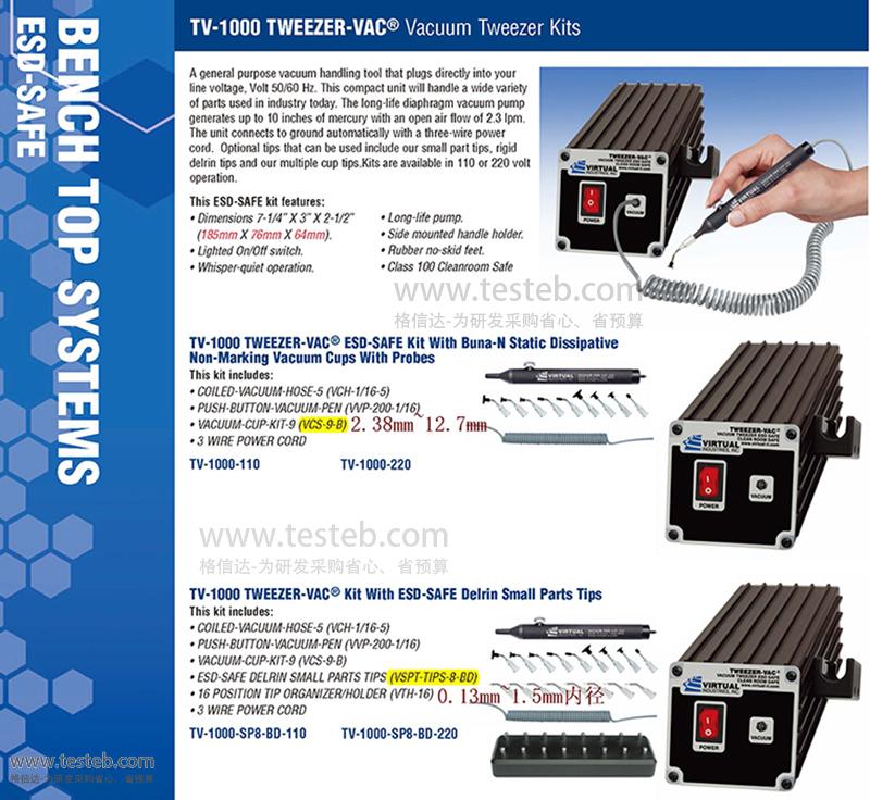 常規型套裝TV1000-220,微型吸筆頭套裝TV-1000-SP8-BD-220型號含VSPT-KIT-8-BD微型吸筆頭組
