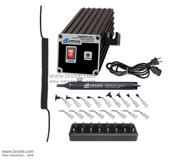VIRTUAL電動真空吸筆使用TWEEZER-VAC隔膜泵提供持續吸力,通過氣管連接吸筆頭及吸盤,用于拾取和釋放精密器件,避免使用鑷子等硬物造成元件損傷,同時可以避免碰掉周邊的元件。TV1000-SP8-BD-220真空吸筆使用220V電動真空泵提供穩定持續吸力,配有8個常規吸筆頭用于處理3mm以上芯片、玻璃蓋板等具有堅實平面的物體,另有和8個微型吸筆頭,可拾取0.1mm~1mm裸芯片die微晶片、晶粒及細小元件,防靜電安全,工作噪音低。