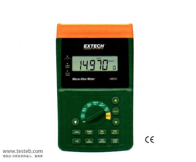 美國(guó)Extech UM200高分辨率微歐姆電阻計(jì)采用4線Kelvin夾測(cè)試引線,分辨率可高達(dá)1μΩ,用于測(cè)量電阻和感應(yīng)材料,最大測(cè)試電流10A,5位數(shù)背光LCD。