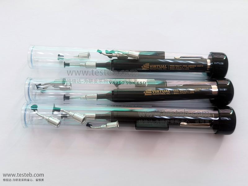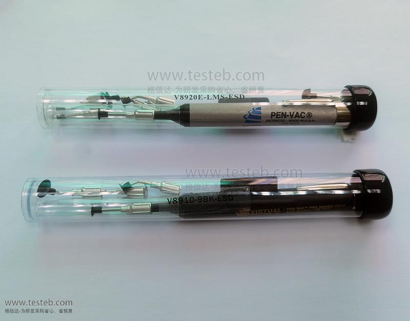 美國Virtual PRO-SERIES PEN-VAC輕型塑料筆身系列長度5寸127mm,V8910-BK-LMS-ESD真空吸筆包含6個吸筆頭3.18mm、6.35mm、9.53mm彎頭直頭各一,黑色防靜電硅膠吸盤表面電阻10^4-10^6歐姆,ESD防靜電安全,工作溫度-55℃-230℃高溫,另有V8910-9BK-ESD含4個筆頭配置。
