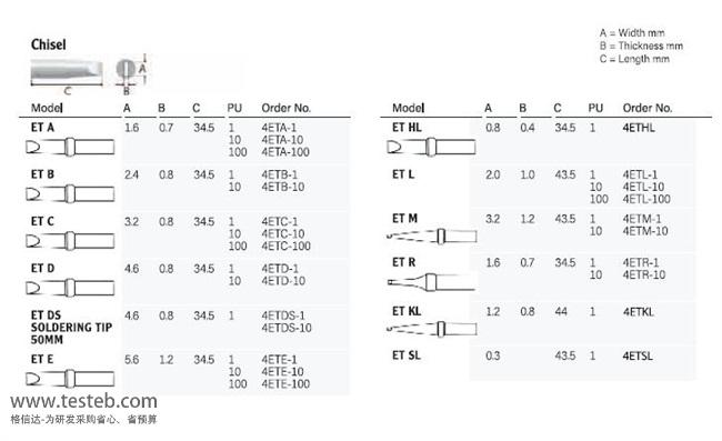 | 4ETA-1 | ET A烙鐵頭 | 鑿狀 | 1.6mm | 0.7mm |