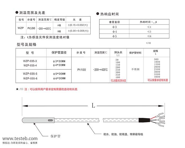 | WZP-035-4 | φ4 *30MM,不銹鋼 | PT100 | -200~420℃ |