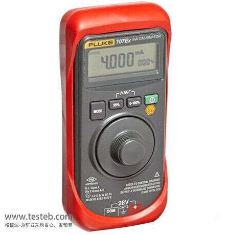 美國福祿克F707Ex回路校準器可用于爆炸危險區域,Fluke 707Ex校準器同時顯示mA和百分比讀數,可快速、簡便地讀取測量結果0.015%的mA準確度,明顯優于其它回路校準器,快速檢查零點和跨度。