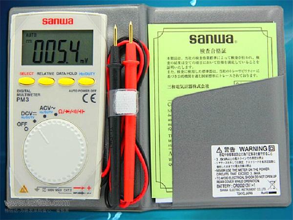 三和SANWA PM3數字萬用表厚度8.5mm小型超薄,提供0.7%最高準確度,具有電容測量、頻率測量(僅交流正弦波)、占空比、數據鎖定、相對值測量功能。