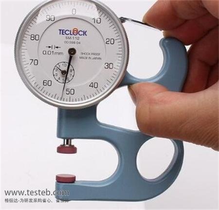 TECLOCK得樂SM-112厚度表測量時要:手持表盤式測厚表將測量物夾在測量頭和測量鉆之間進行。日本得樂SM-112百分表按下升降桿測量頭則上升,松開既返回到0點。和百分尺等測量器相比有操作簡單,測量時間短的特性。指針和數字式均有分度值為:0.01MM和0.001MM兩種產品。行程式能根據測量部的大小,最厚可測量到50毫米,另外,還廣泛應用于皮革紙,頭發,橡膠板,金屬管,塑料薄膜的測量。